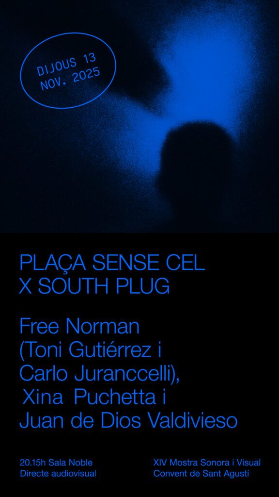 South Plug presenta Plaça Sense Cel, obra audiovisual que será estrenada el día jueves 13 de noviembre a las 20:00 horas, en la Sala Noble del Convent de Sant Agustí, en el contexto de la XIV Mostra Sonora i Visual.